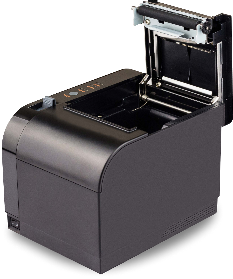 Заменить чековую ленту легко — одно нажатие кнопки и подпружиненная крышка откроется полностью, без риска травмы пальцев кассира. Дополнительно принтер имеет съемную переднюю панель, открывающую полный доступ к автоотрезчику.